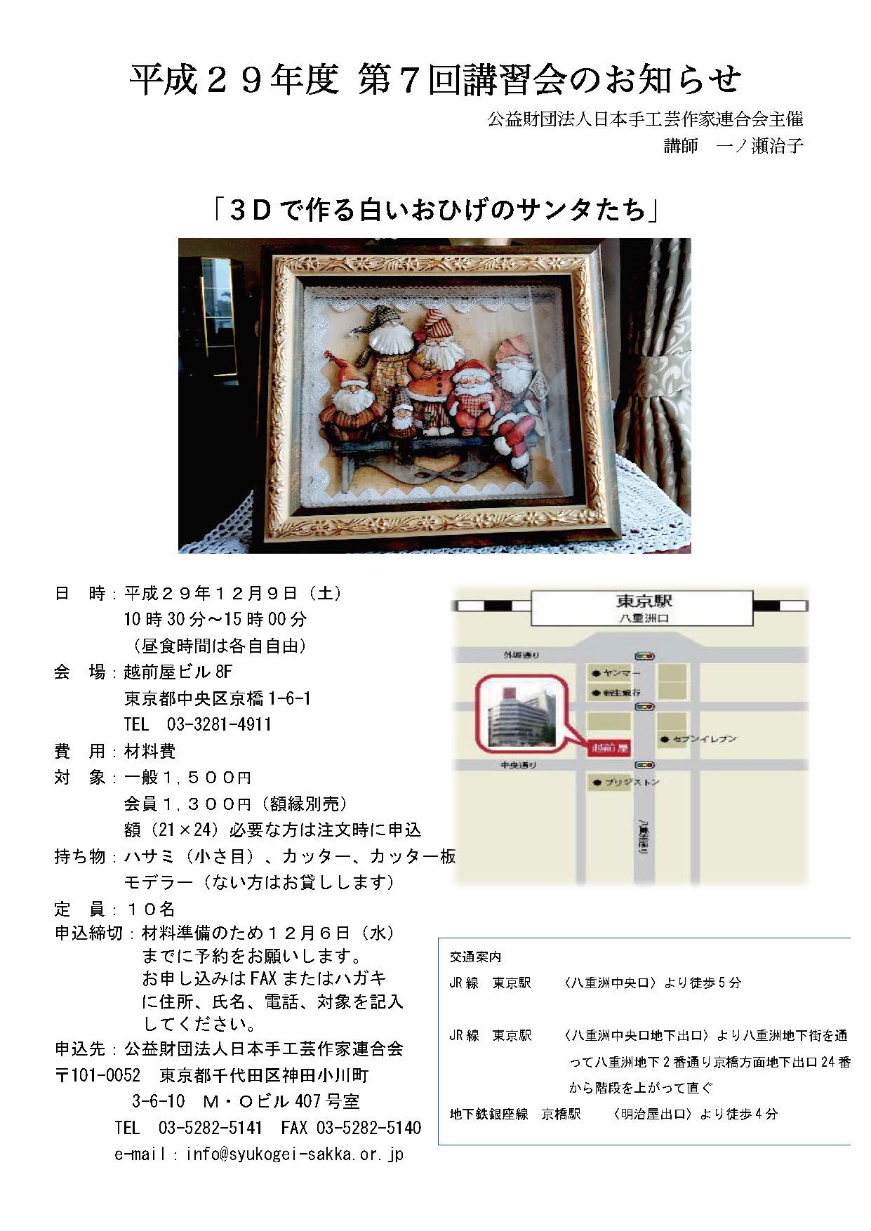 平成29年度 第7回講習会は「3Dで作る白いおひげのサンタたち」です